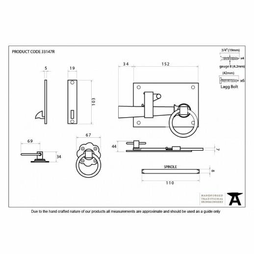 From The Anvil 33147R Cottage Latch; Right Hand (RH); Beeswax (BW)