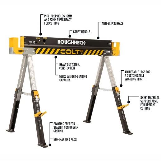 Roughneck XMS25HORSE 35-601 600E Colt Folding Steel Sawhorse; Sawhorse; Twin Pack