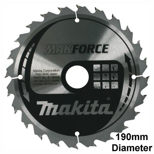 Makita B-08355 Makforce Circular Saw Blade; 2.2mm Kerf; 190mm x 24 Teeth; 30mm Bore