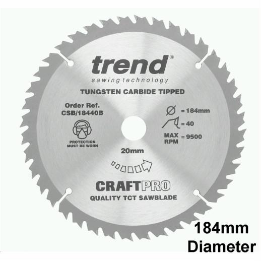 Trend CSB/18440B Craft Circular Saw Blade; 184mm x 40 Teeth; 20mm Bore; 2.6 Kerf
