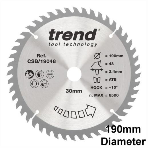 Trend CSB/19048 Craft Circular Saw Blade; Wood Range; 190mm x 48 Teeth x 30mm Bore; 2.4mm Kerf