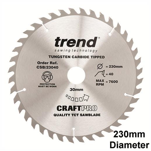 Trend CSB/23040 Craft Circular Saw Blade; 230mm x 40 Teeth x 30mm Bore; 2.6mm Kerf
