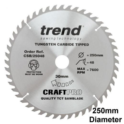 Trend CSB/25048 Craft Circular Saw Blade; Wood Range; 250mm x 48 Teeth x 30mm Bore; 2.8mm Kerf